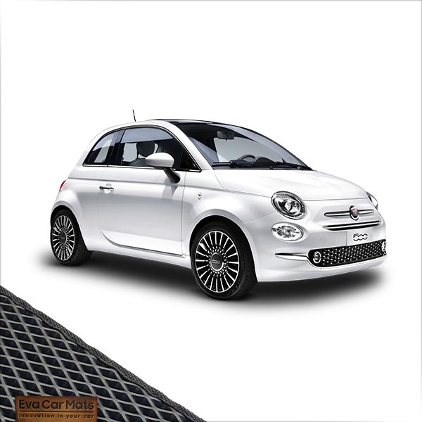 EVA CAR MATS for FIAT 500 I (2007-2023) production are bright, practical and modern solution to protect your car from dirt. The EVA floor mats, designed specifically for your car , match all curvatures of the floor to the maximum, keeping them clean and tidy.