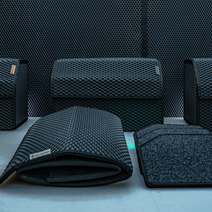 Aukšta kokybė: mūsų automobilio daiktadėžės kruopščiai pagamintos iš EVA polimero (etileno vinilo acetato) medžiagos, pasižyminčios aukšta kokybe bei atsparumu. Šios daiktadėžės suprojektuotos atlaikyti kasdieninio naudojimo iššūkius ir yra itin ilgaamžiškos, jų kokybė užtikrina patikimą tarnavimą ne vienerius metus.